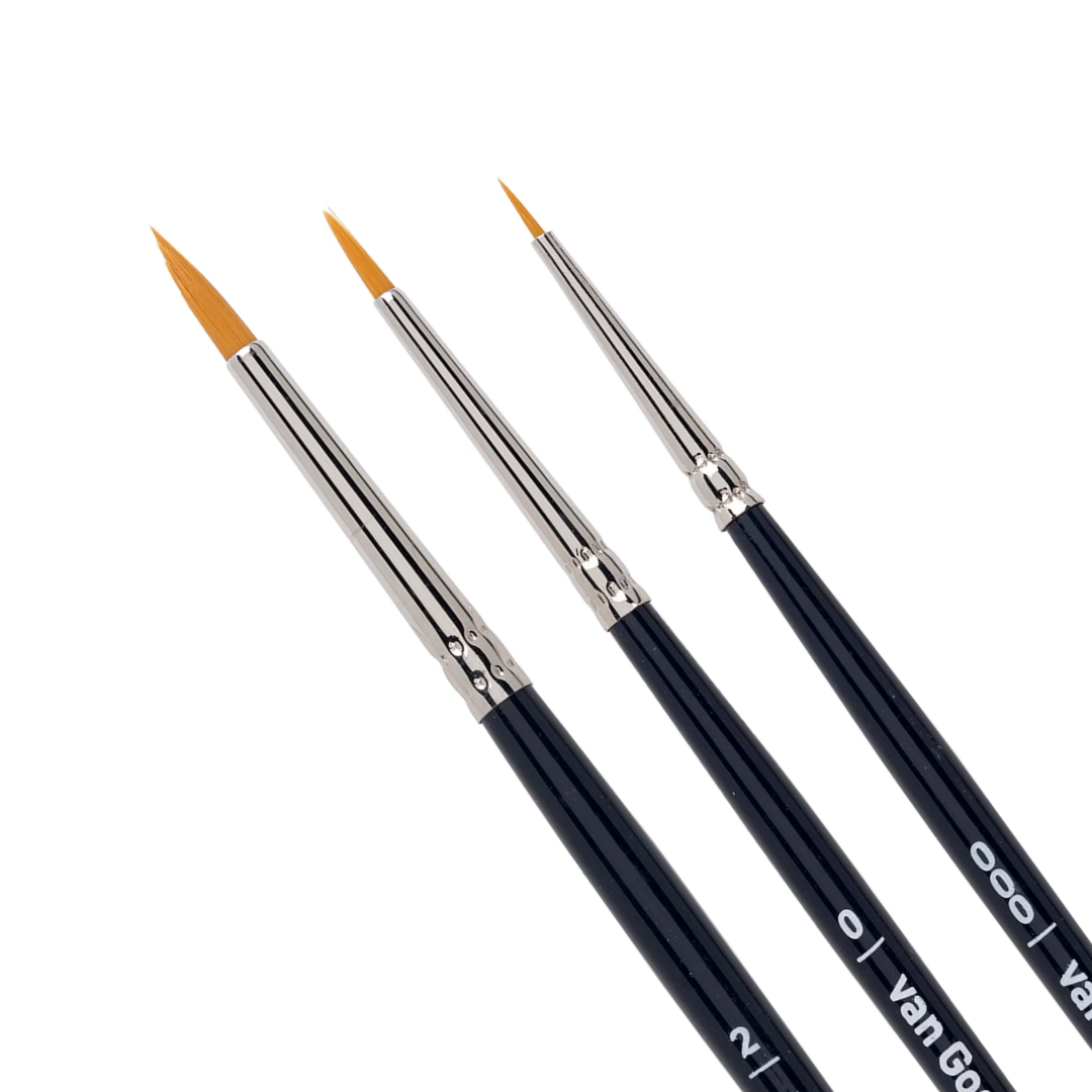 Bredderne på de inkluderede børster er 1,6 mm, 2,2 mm og 2,9 mm (str. 000, 0 & 2)