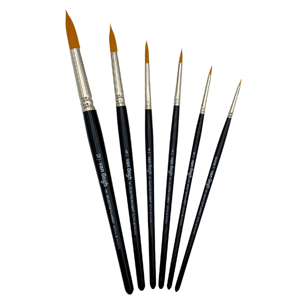 Bredderne på de inkluderede pensler er 1,6 mm, 2,2 mm, 2,9 mm, 3.3 mm, 5.7 mm og 8.1 mm (str. 000, 0, 2, 4, 8 & 12)