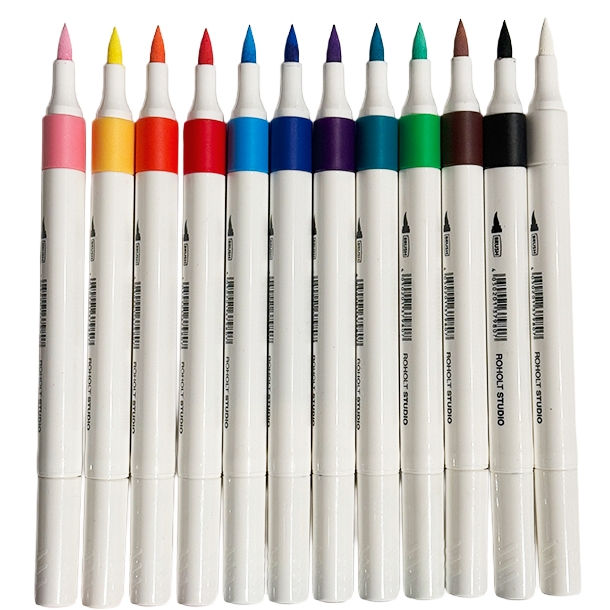 Hver tusch har en fleksibel og præcis brushtip, som gør det nemt at skabe både fine detaljer og brede strøg, uanset om du arbejder med illustrationer, dekorationer eller håndskrift.