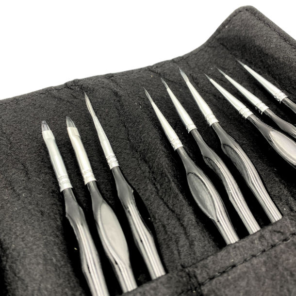 Sættet indeholder 15 højkvalitetspensler med forskellige spidser, som gør det perfekt til alt detaljearbejde.