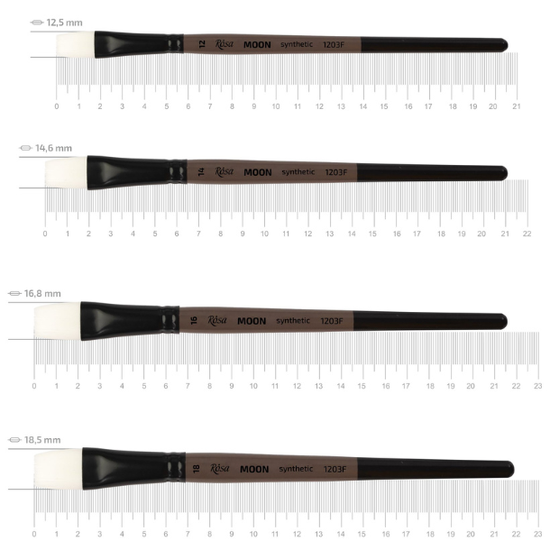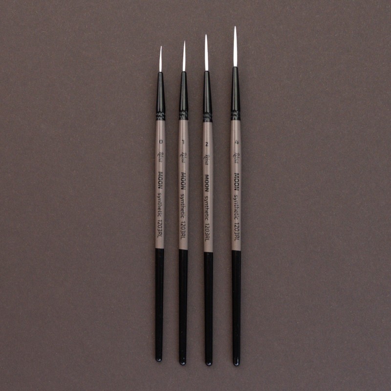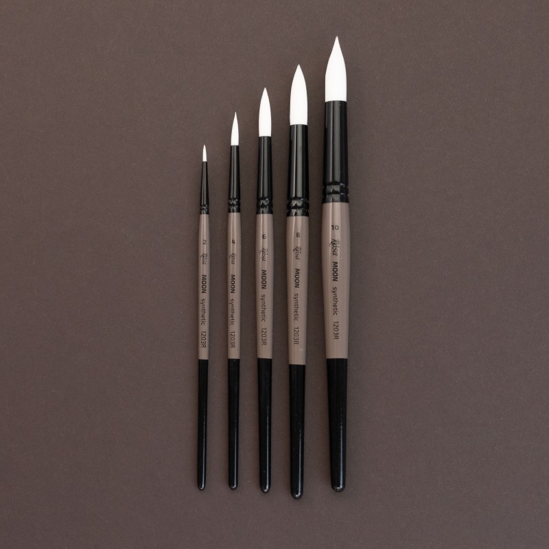 MOON-serien består af pensler med bløde, syntetiske hvide hår og kort skaft, udviklet til kunstnere, der ønsker kontrol, præcision og fleksibilitet i deres arbejde.