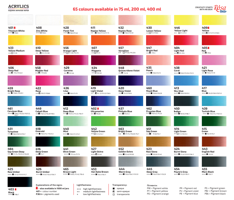 ROSA Studio Acrylics er kendt for sin fremragende kvalitet og brugervenlige egenskaber, der omfatter: