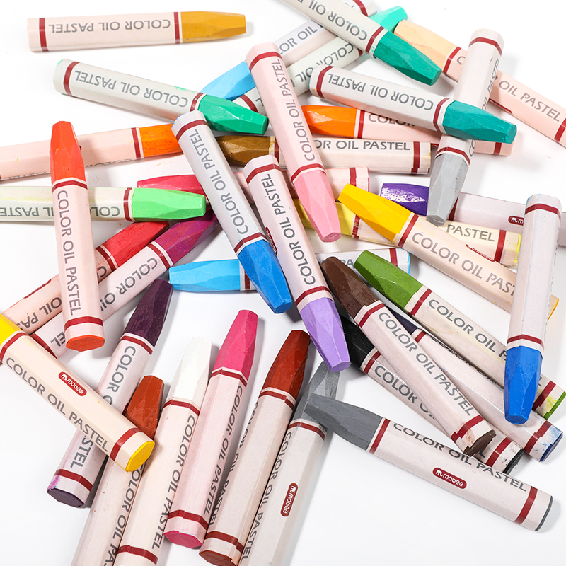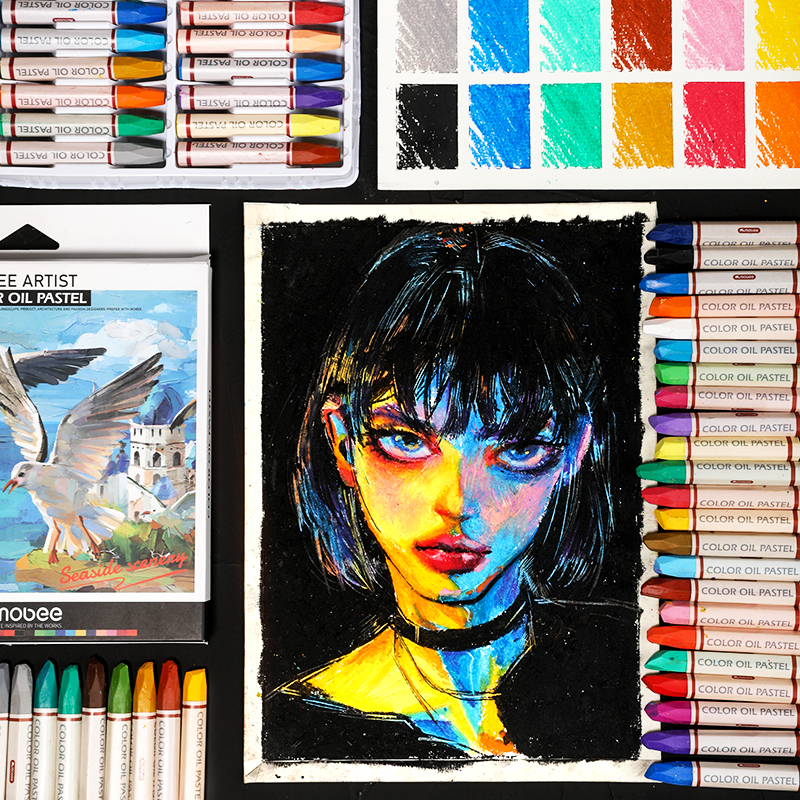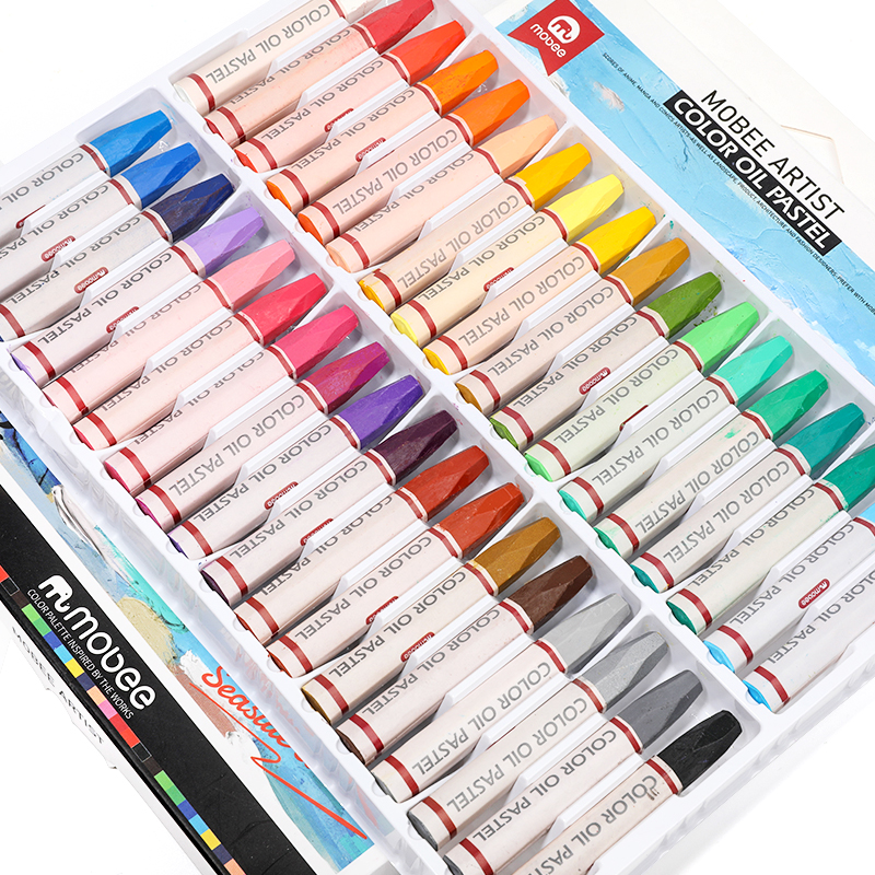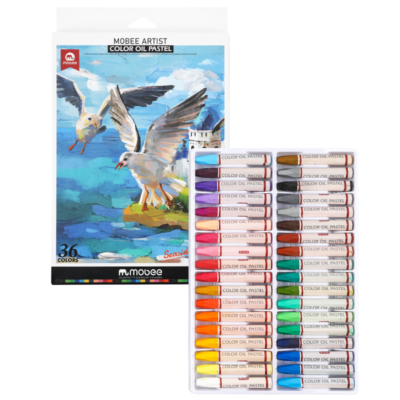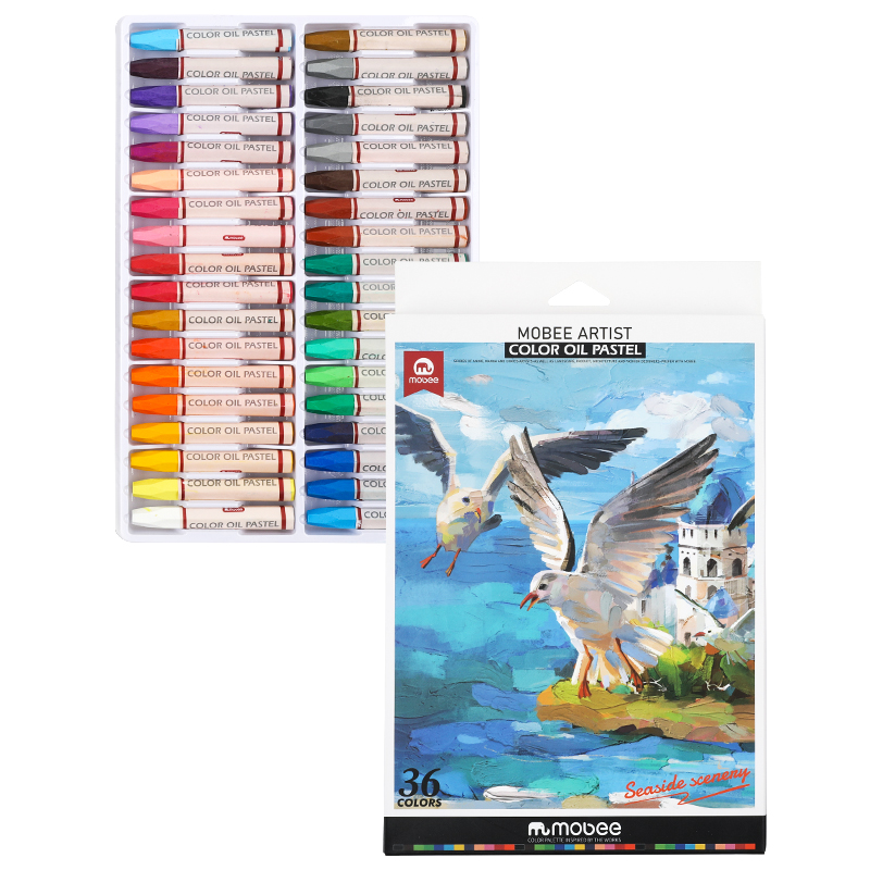 Mobees farvede oliepasteller kommer i 36 strålende nuancer, der giver dig mulighed for at skabe livlige og dybe farveeffekter på pastelpapir.
