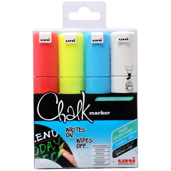 Uni Chalk Markers er perfekt at bruge på tavler, vinduer, glas, skilte og spejle.