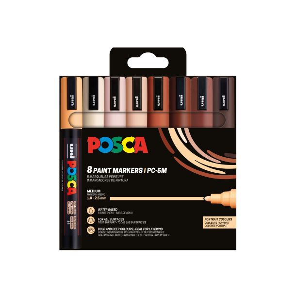 Med POSCA Portrait 8-pak får du et professionelt værktøj, der gør det lettere at arbejde med nuancer, kontraster og udtryk – og bringe dine portrætter til live med varme, dybde og karakter.