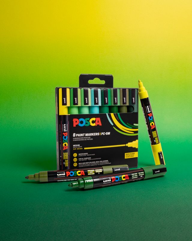 Med POSCA Green 8-pak får du et alsidigt farvesæt, der giver liv, dybde og variation til dine værker – inspireret af naturens egne nuancer.