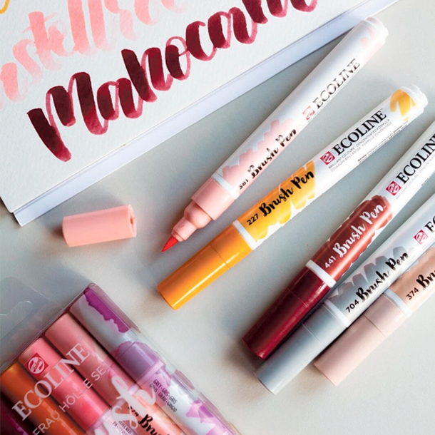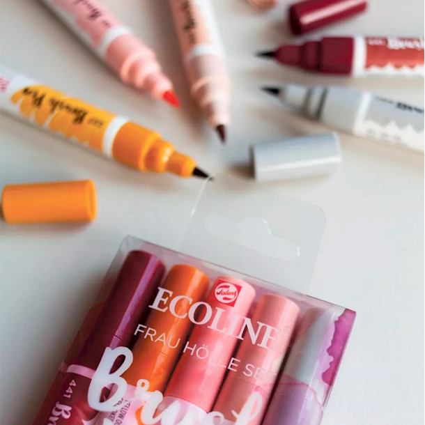 Dette sæt med 5 Ecoline akvarel brushpens er nøje sammensat i samarbejde med kunstneren og kalligrafi-eksperten Frau Hölle.