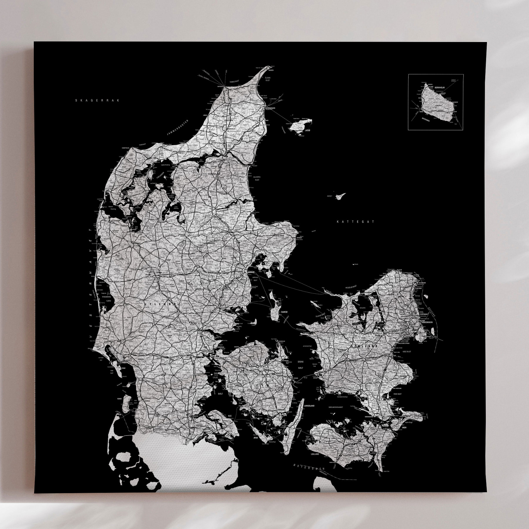Opslagstavle Danmarkskort - Sort - Sort ramme