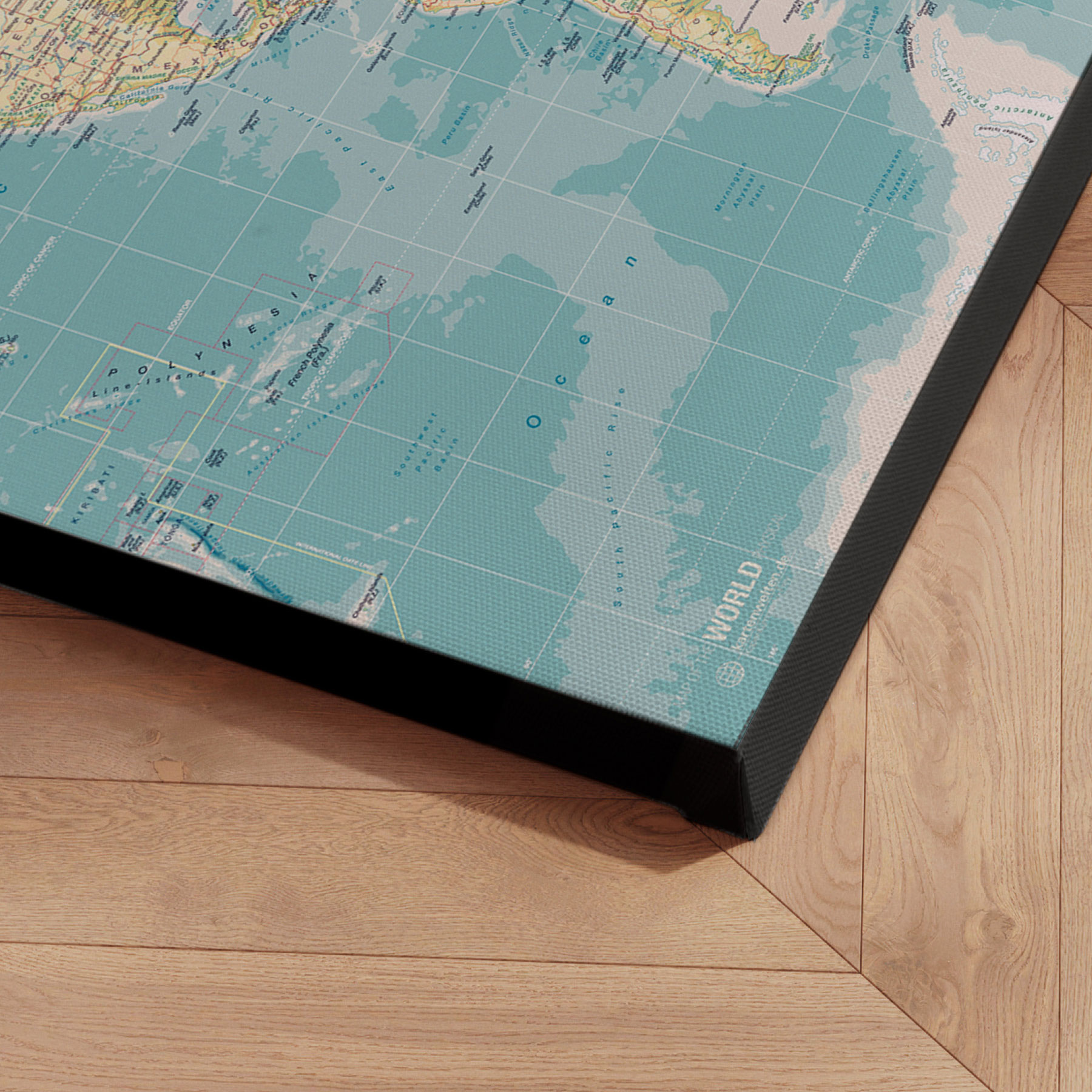 Lærredsprint Verdenskort Retro er en opdateret design fra 2024.
