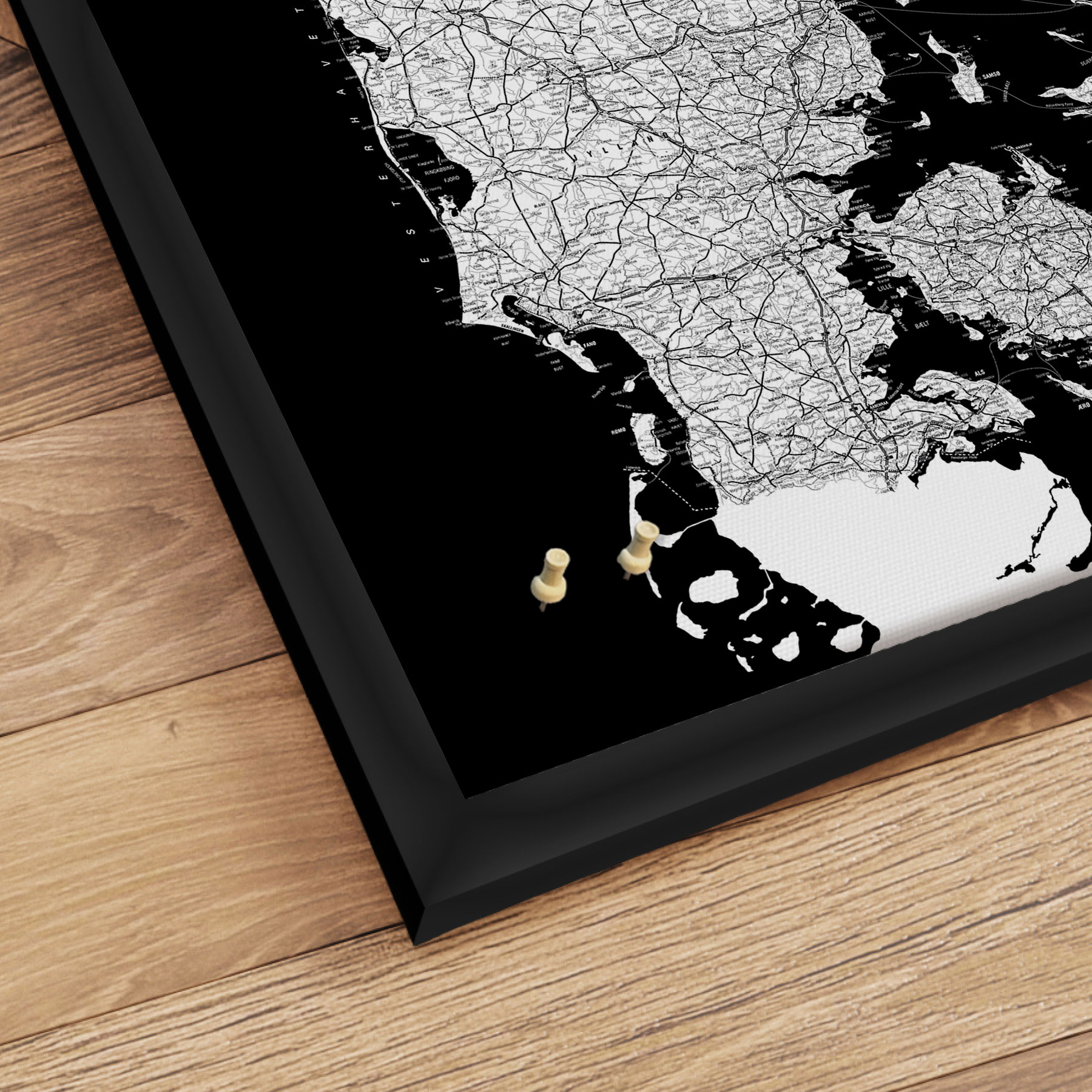 Opslagstavle Danmarkskort - Sort - egetræsramme