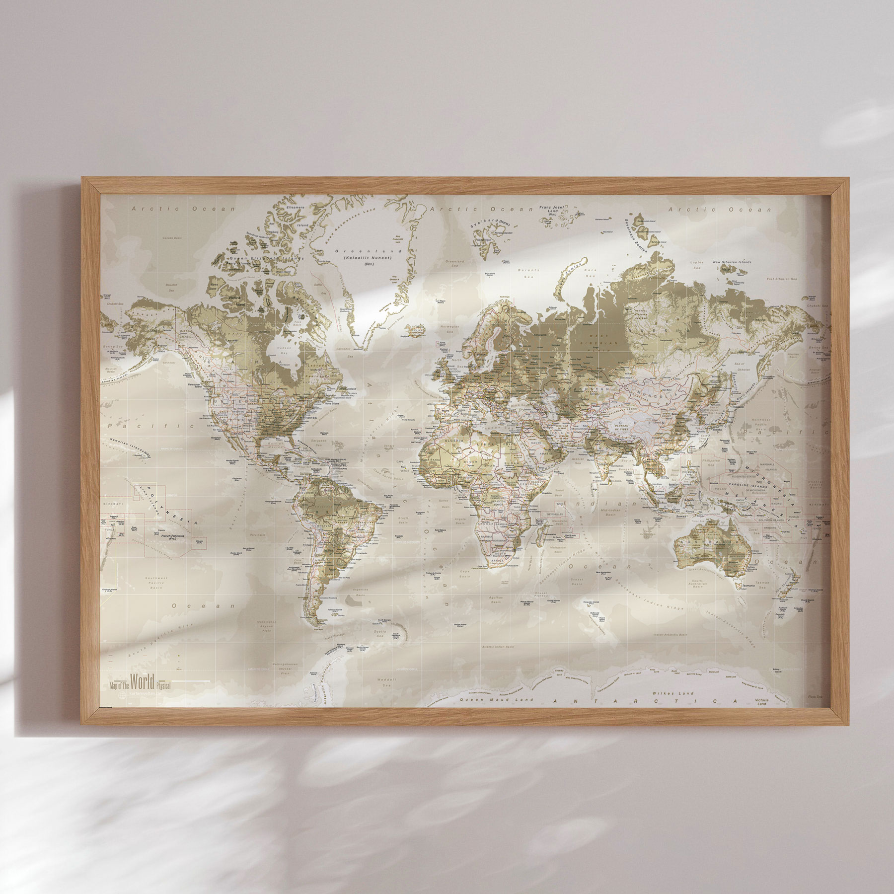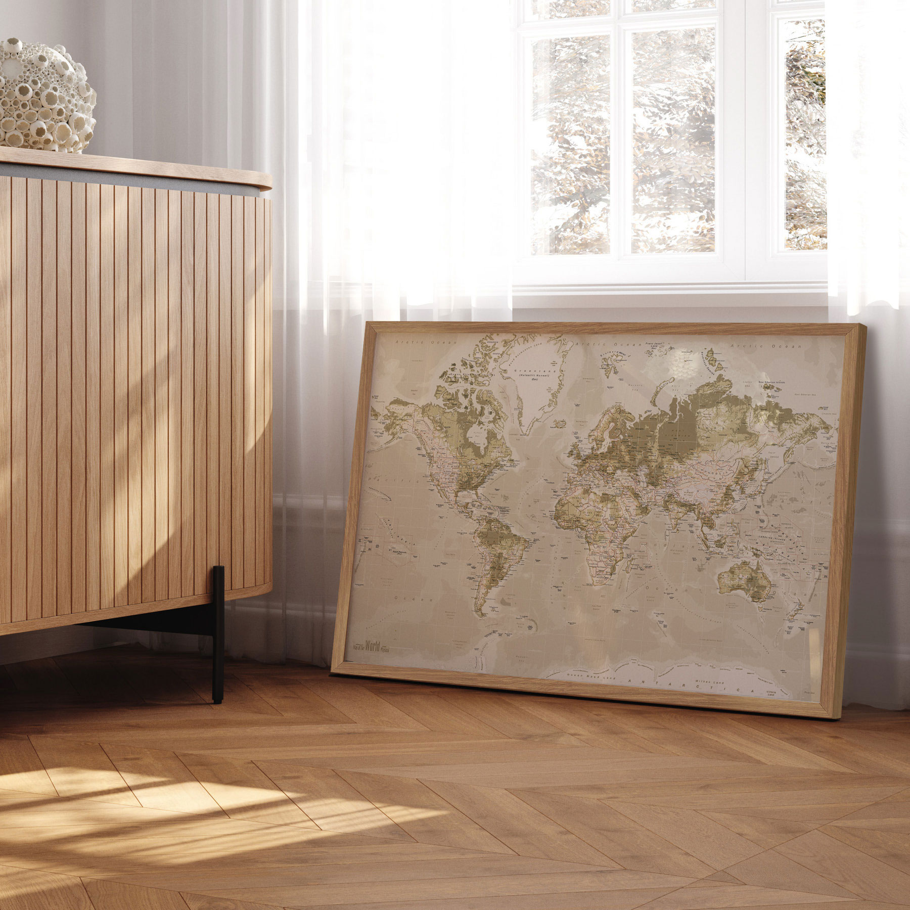 Opslagstavle Verdenskort - Vintage - Sort ramme