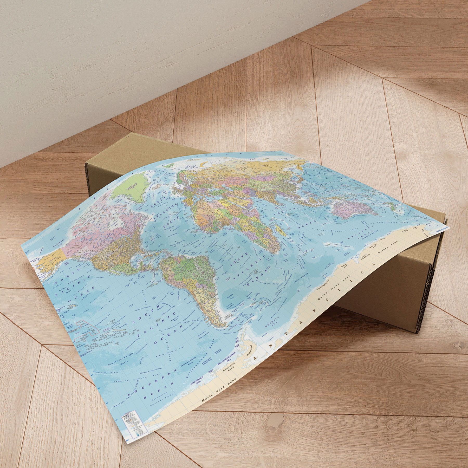 Dette Verdenskort er en plakat og leveres uden ramme.