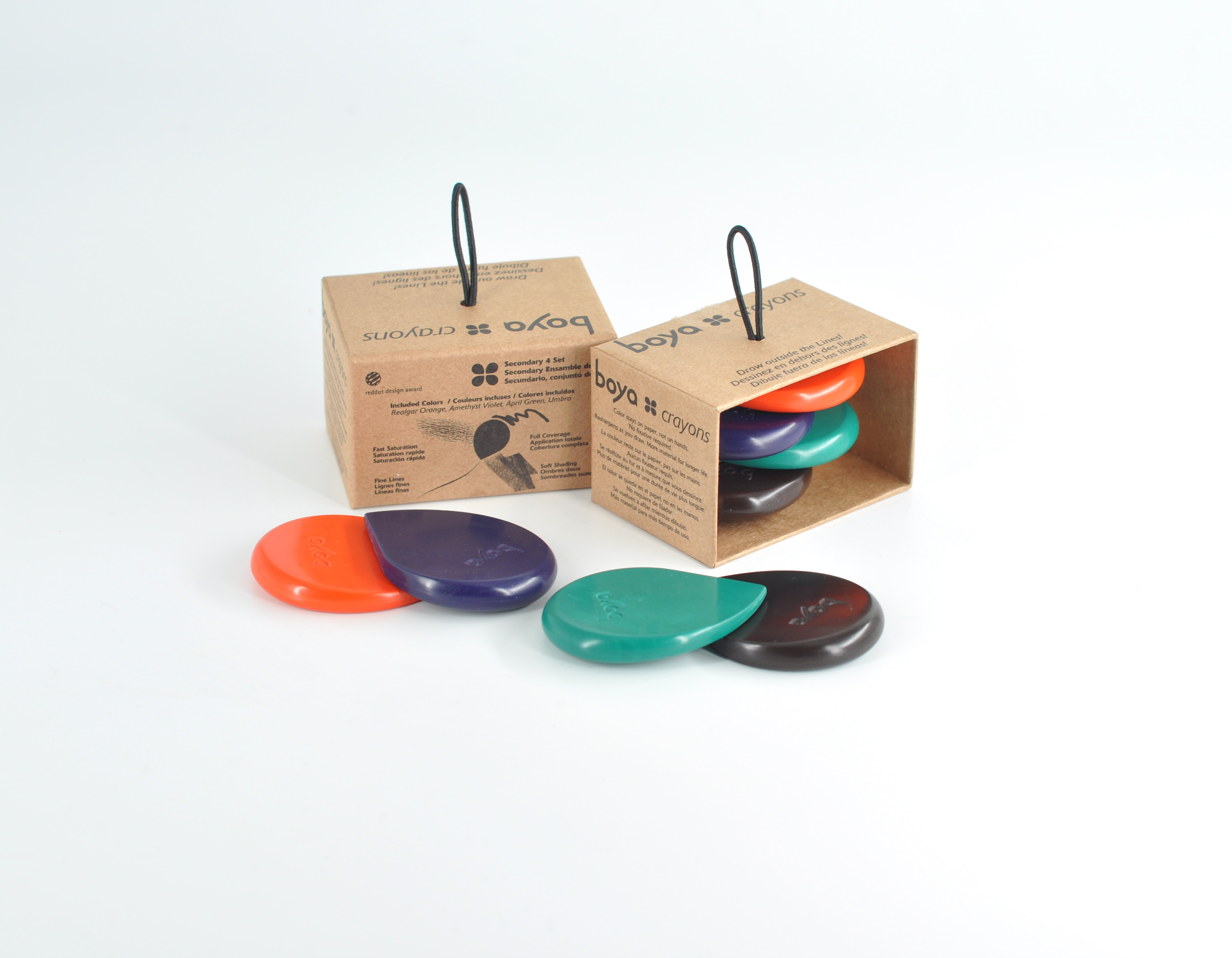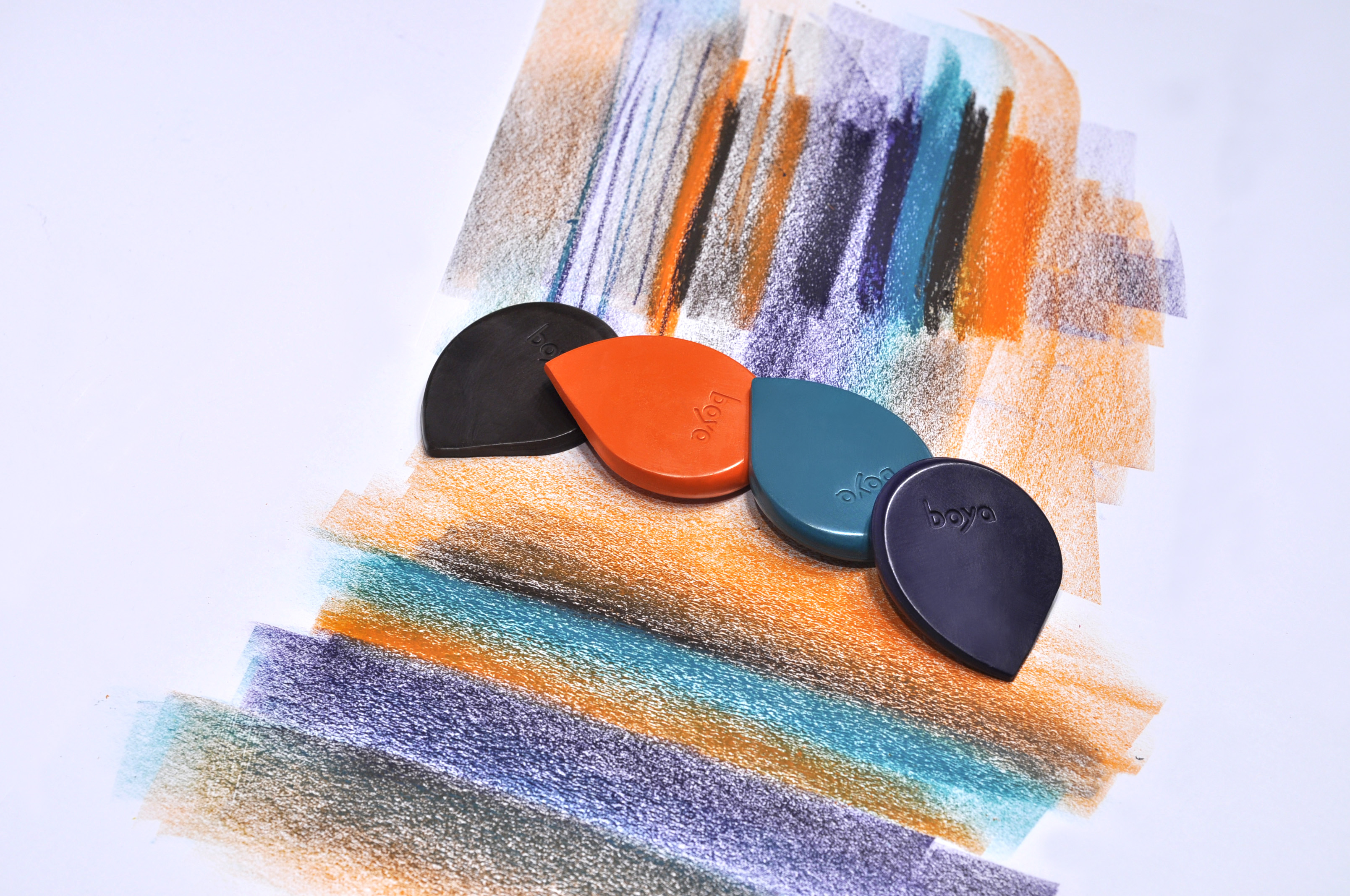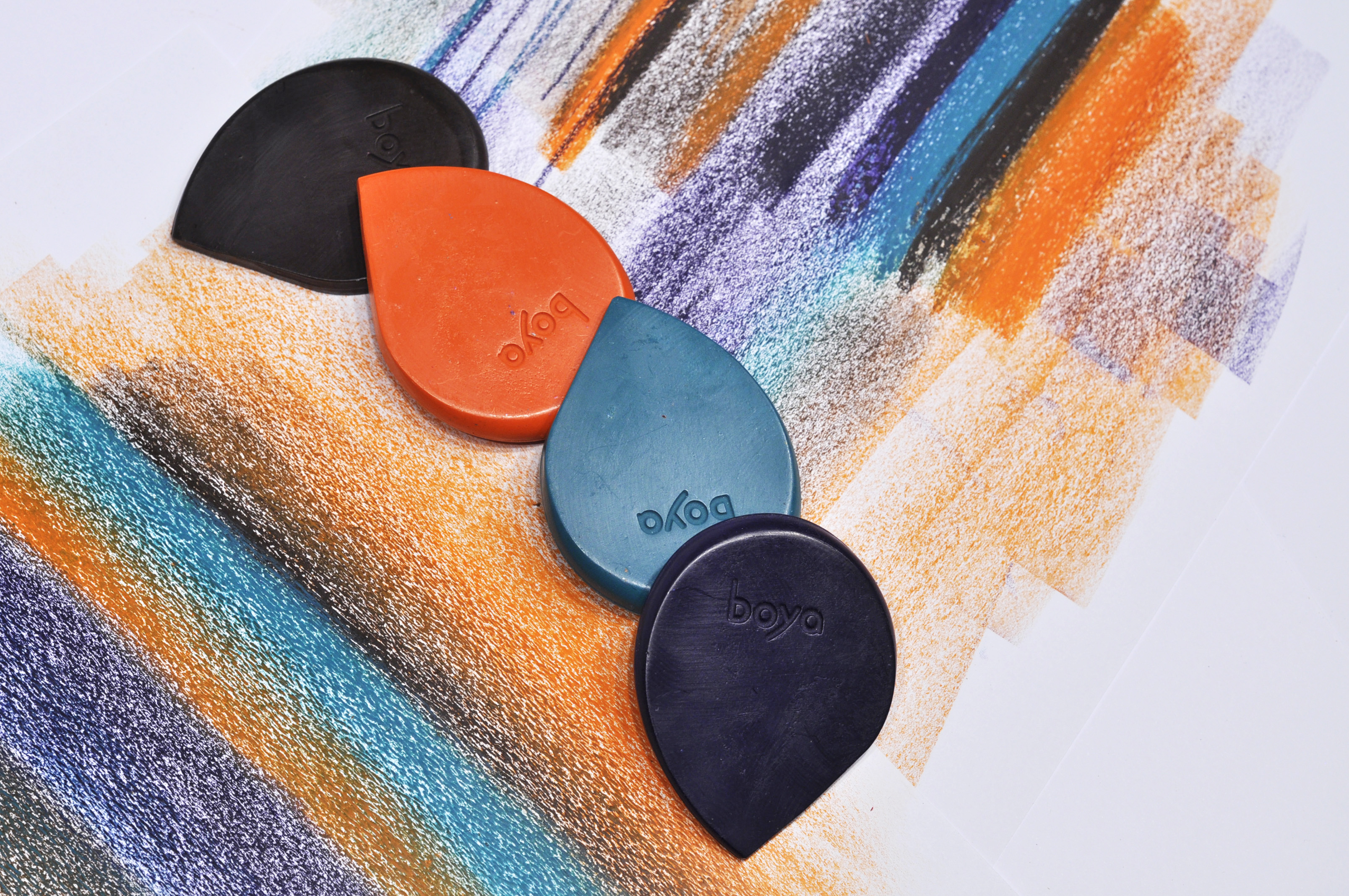Boya crayons pakke med 4 kridt i farverne Realgar orange, April green, Amethyst violet & Umbra brown. Boya er en blød vokspastel til tegning, farvning og maling. Boya crayons er designet anderledes, deres form er dannet af kanter, spidser og runde sider, som giver dig mulighed for at tegne med linjer såvel som farvede overflader eller nuancer - hovedelementerne i enhver tegning og maleri.