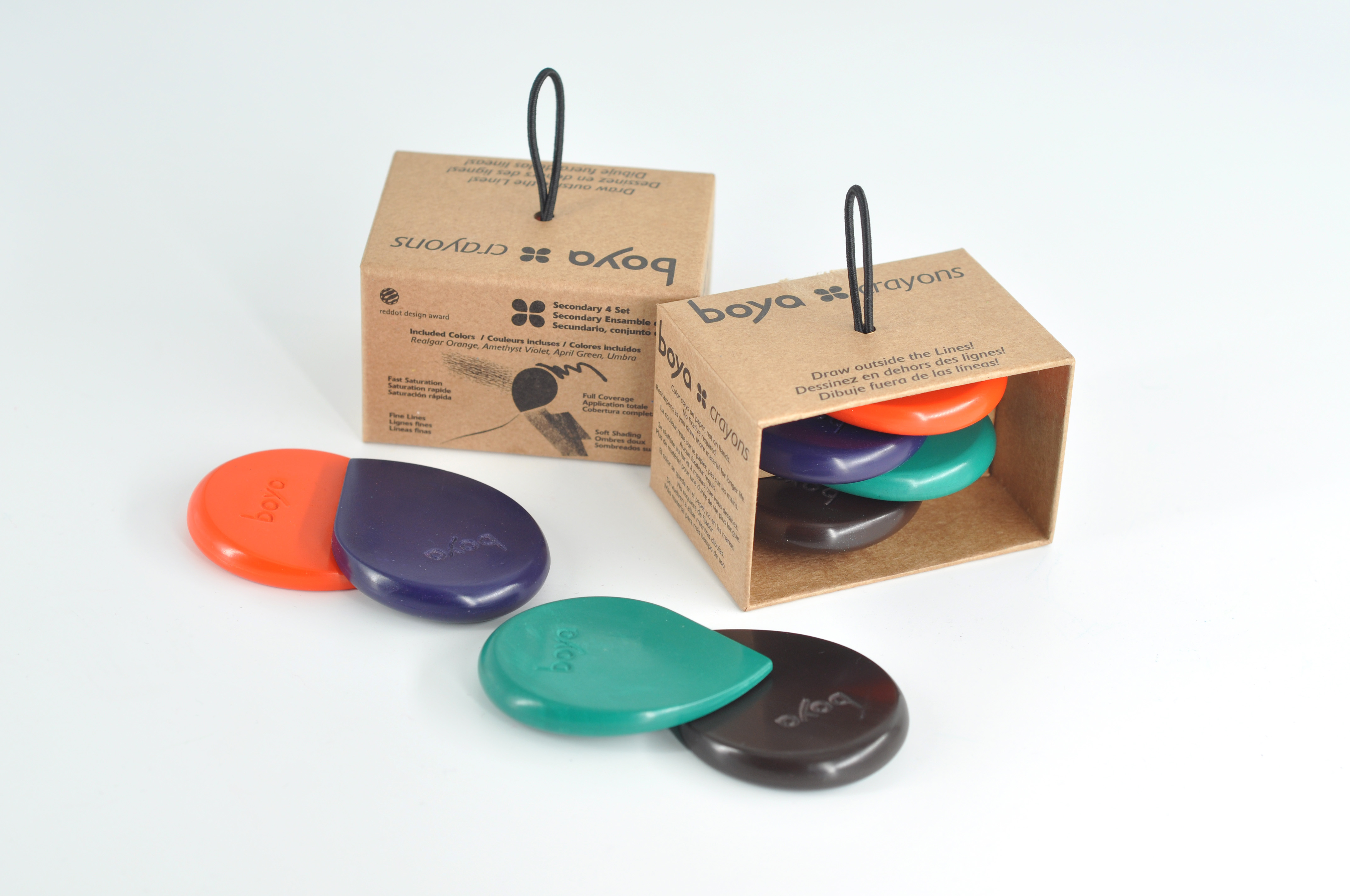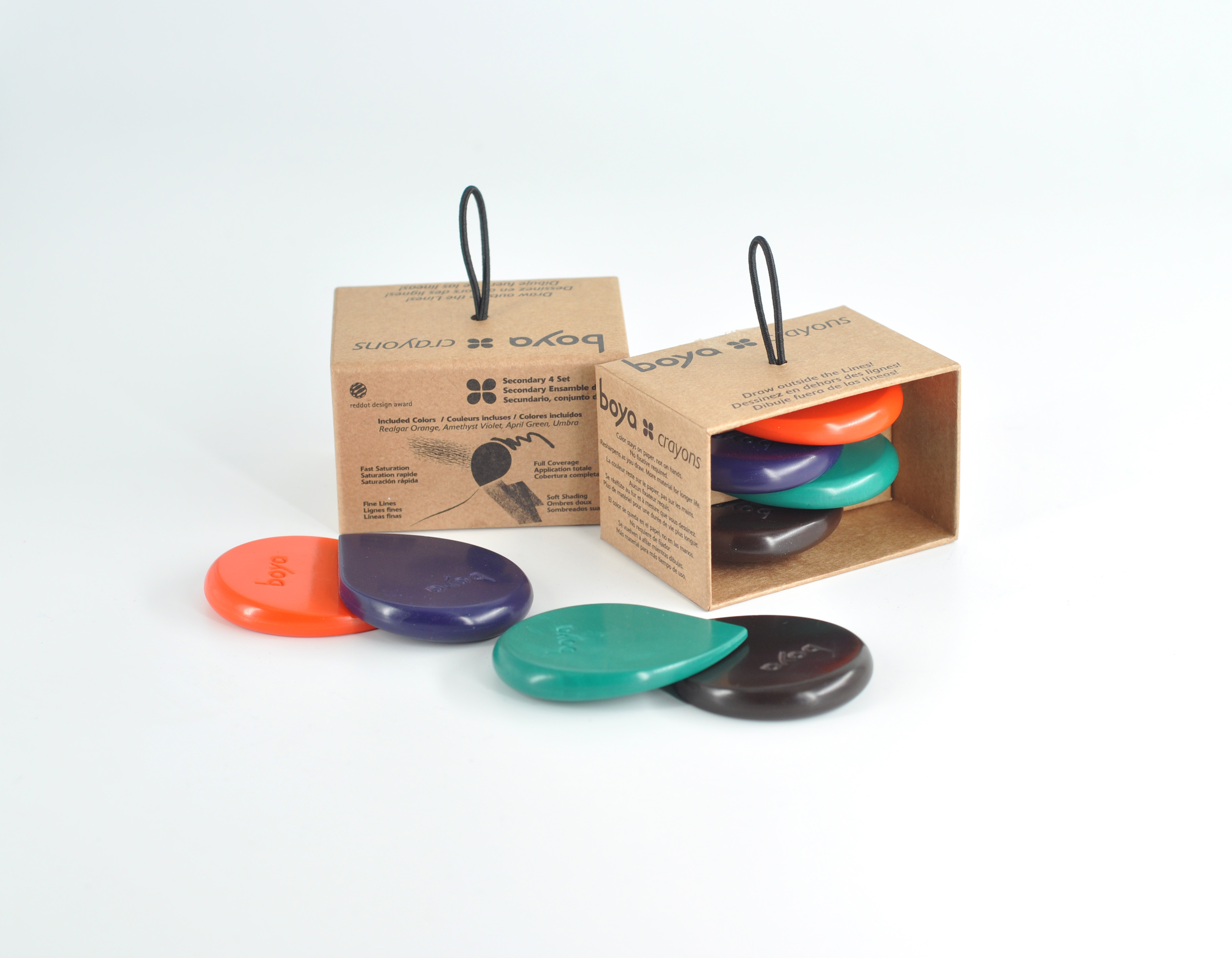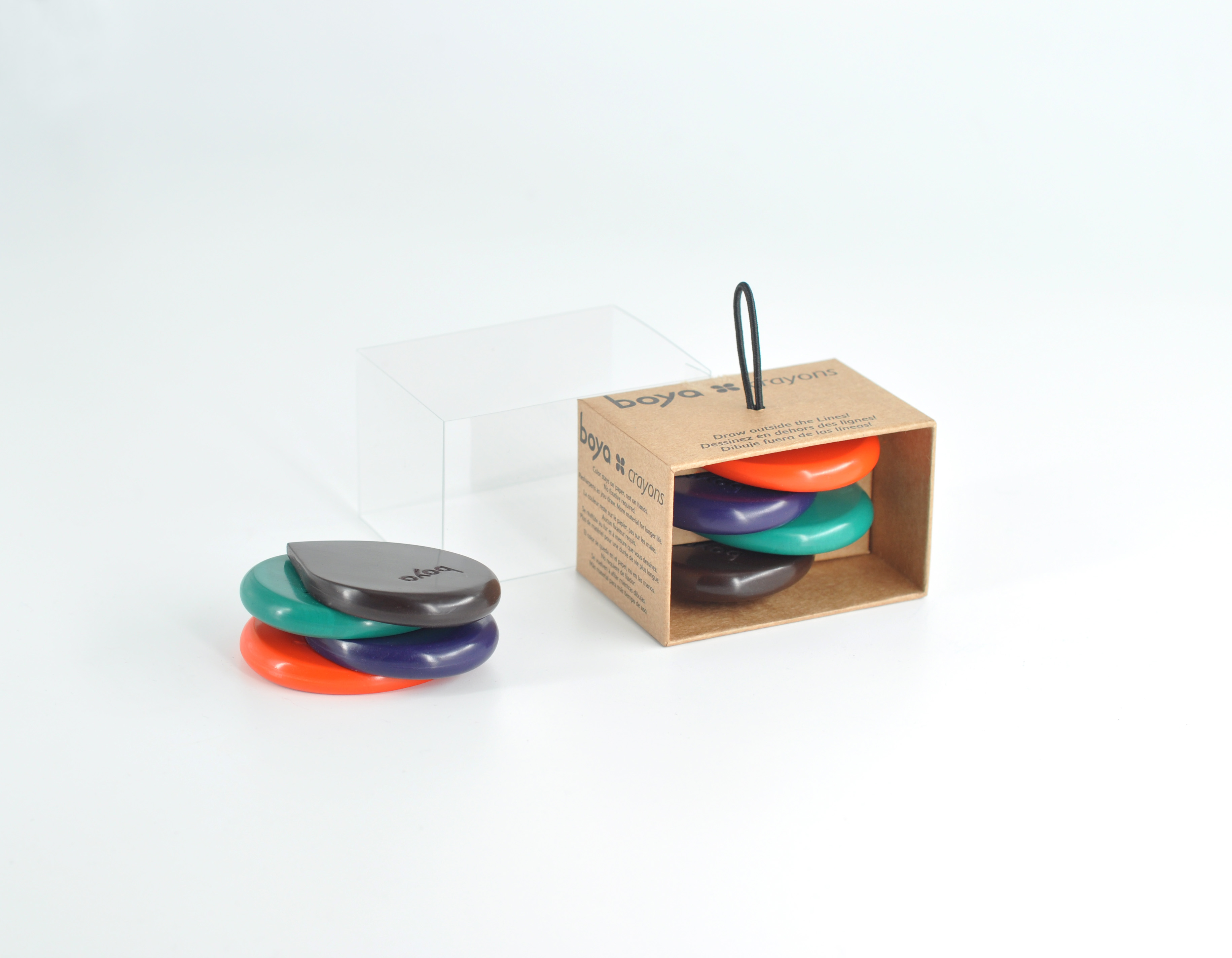 Boya crayons pakke med 4 kridt i farverne Realgar orange, April green, Amethyst violet & Umbra brown. Boya er en blød vokspastel til tegning, farvning og maling. Boya crayons er designet anderledes, deres form er dannet af kanter, spidser og runde sider, som giver dig mulighed for at tegne med linjer såvel som farvede overflader eller nuancer - hovedelementerne i enhver tegning og maleri.