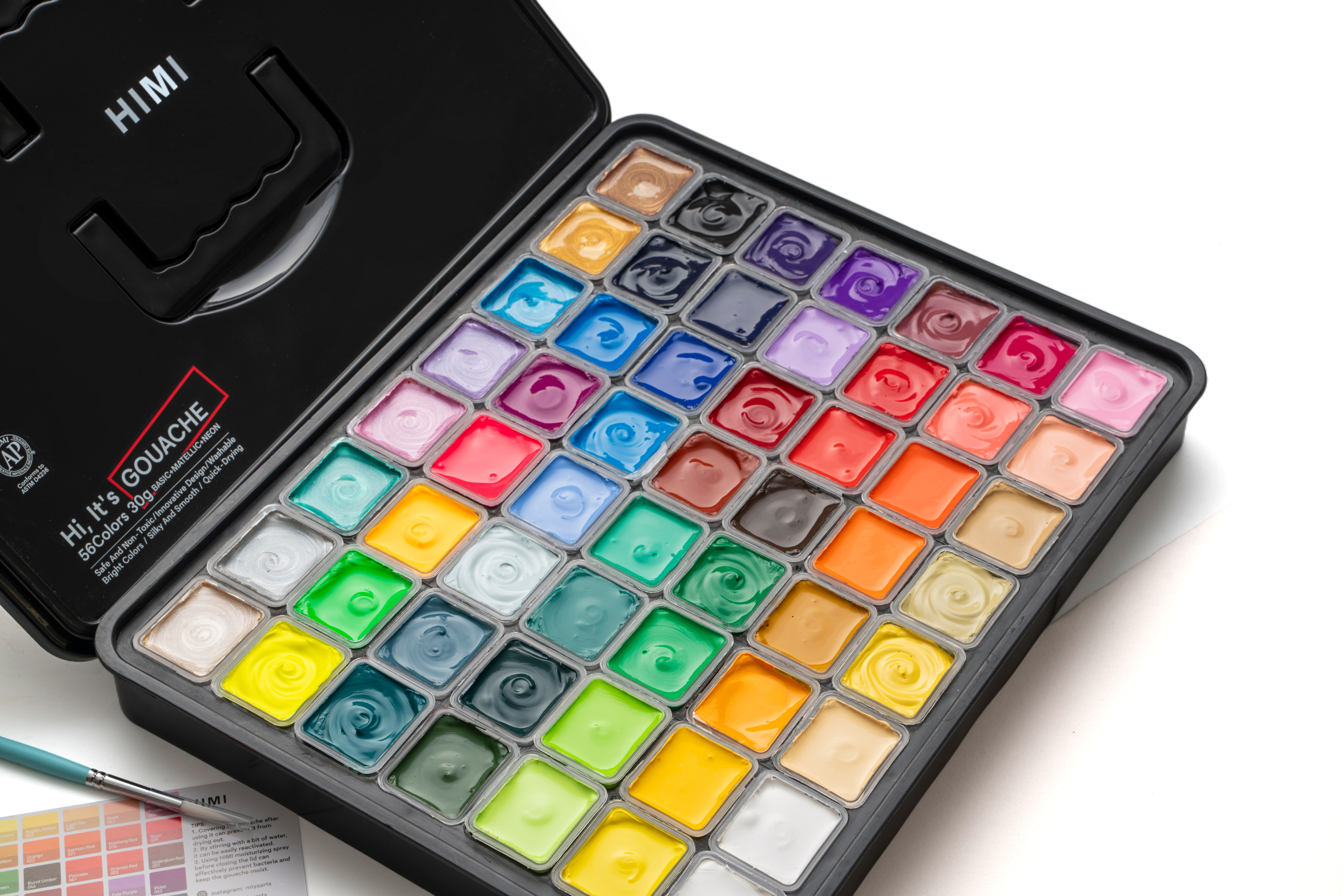 HIMI Gouache Jelly Cup Set giver intense og jævne farver med høj dækkeevne og er let at blande for at skabe glatte overgange.