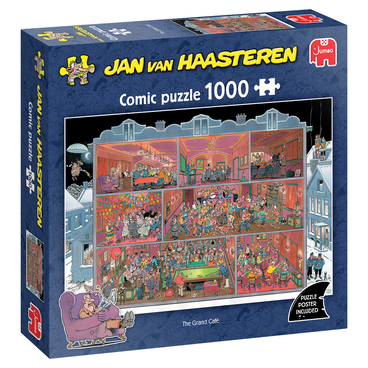 Puslespil fra Jumbo af Jan Van Haasteren, bestående af 1.000 brikker og med et detaljeret og sjovt motiv, rigtig god og hyggelig beskæftigelse, med hele familien, dog ikke egnet til børn under 3 år.'