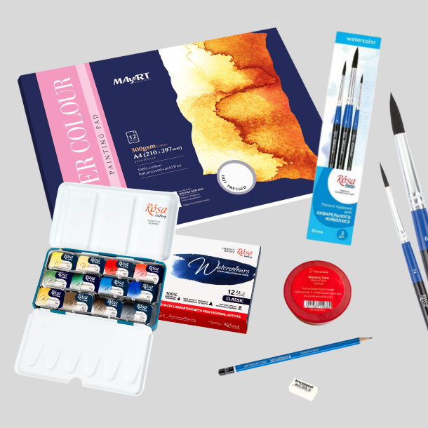 Dette Rosa Basis Akvarelsæt er en ideel pakke for alle, der ønsker at udforske akvarelmaling – uanset om du er nybegynder, hobbyartist eller professionel.