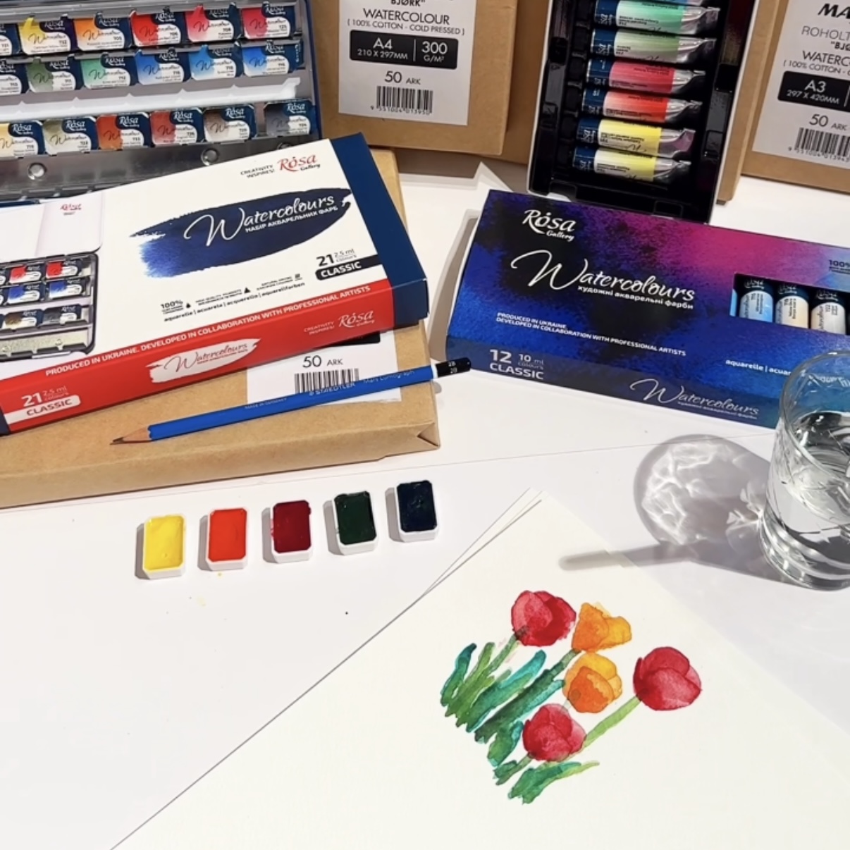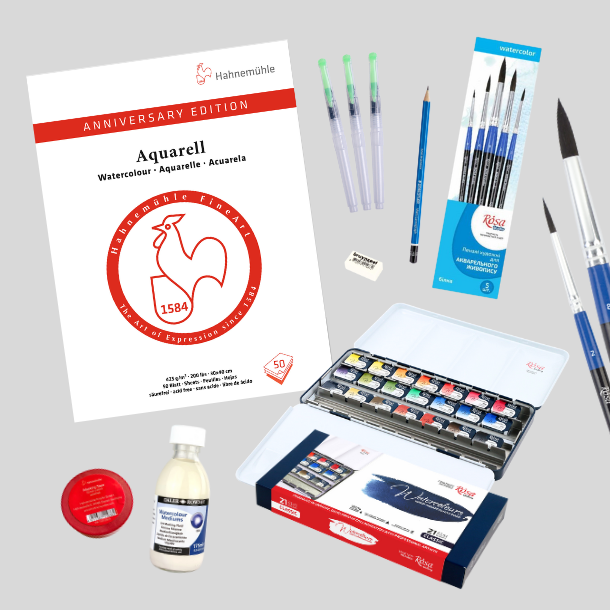 Dette Rosa Premium Akvarelsæt er en ideel pakke for alle, der ønsker at udforske akvarelmaling – uanset om du er nybegynder, hobbyartist eller professionel.